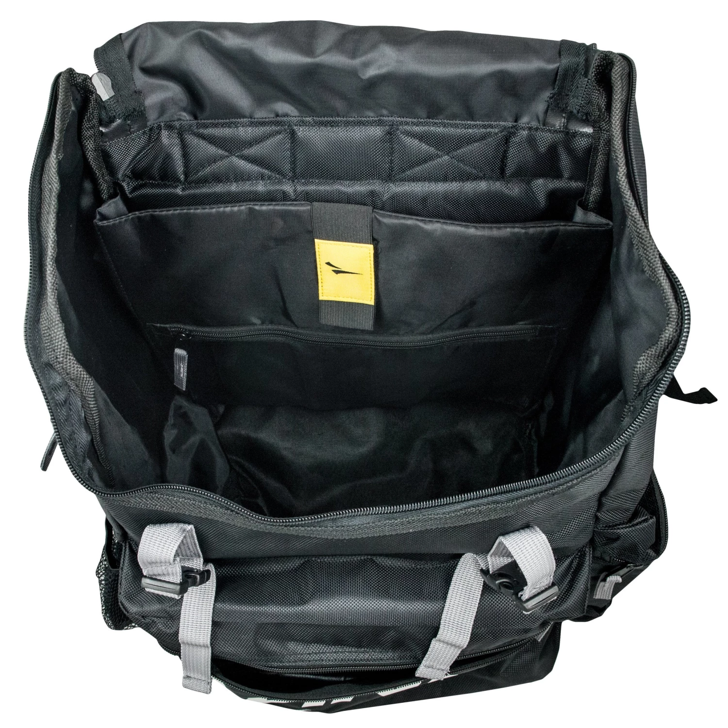 The Torque backpack was designed with swimmers and aquatic athletes’ needs in mind. The ergonomic design sits comfortably on the shoulders and is large enough to accommodate both training and competitive uses. The Torque’s rubberized bottom and internal waterproof compartments keep contents dry while on the pool deck. Dual side pockets allow for additional storage and the convenient suit hanger clips help suits dry between swimming sessions. The durable polyester material is built to withstand repeated use and the entire bag is machine washable for the ultimate convenience.