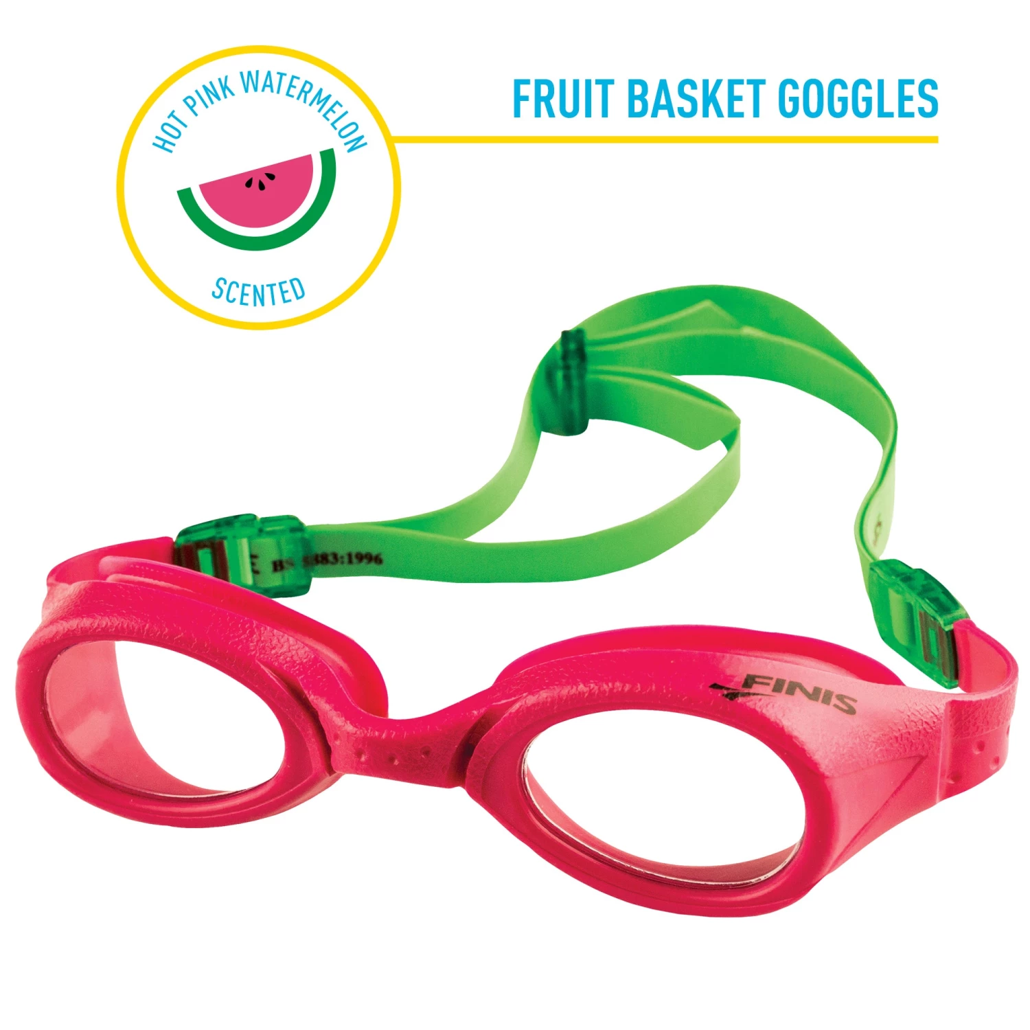 The Fruit Basket goggles are available in four bright colors and scents – Creating the most fun kids goggle. The soft frame provides a watertight fit for sensitive faces. The Fruit Basket goggles feature a dual silicone strap for added comfort.