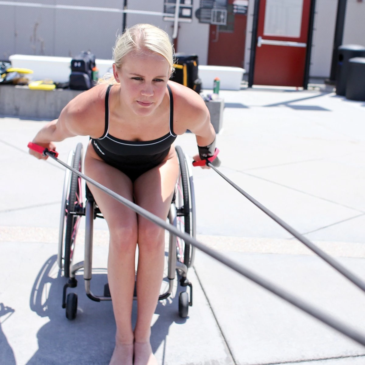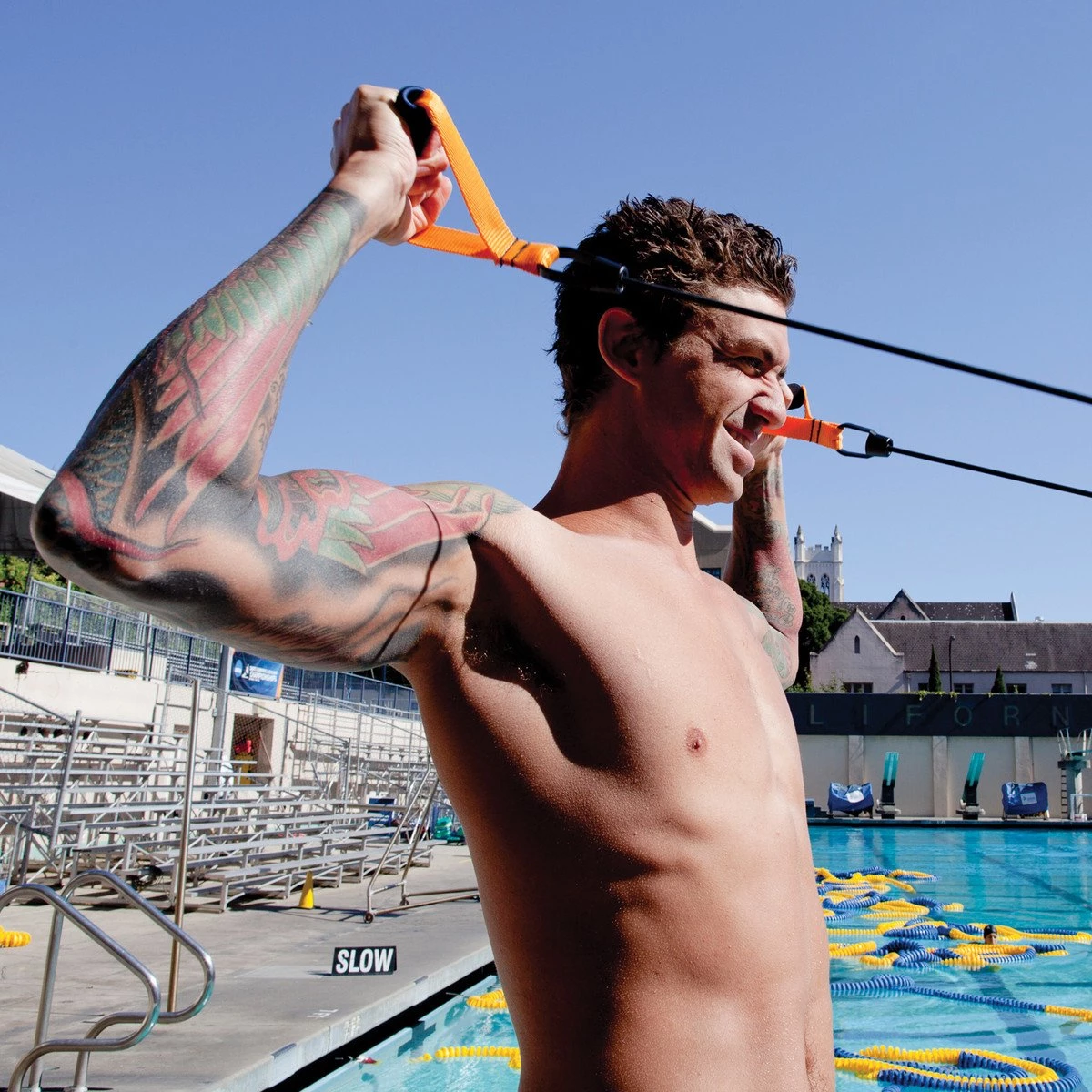 The Dryland Cords are made with durable rubber tubing and comfortable handles. Attaching to an anchor point, the Dryland Cords simulate swimming movements out of the water to improve strength and range of motion.
