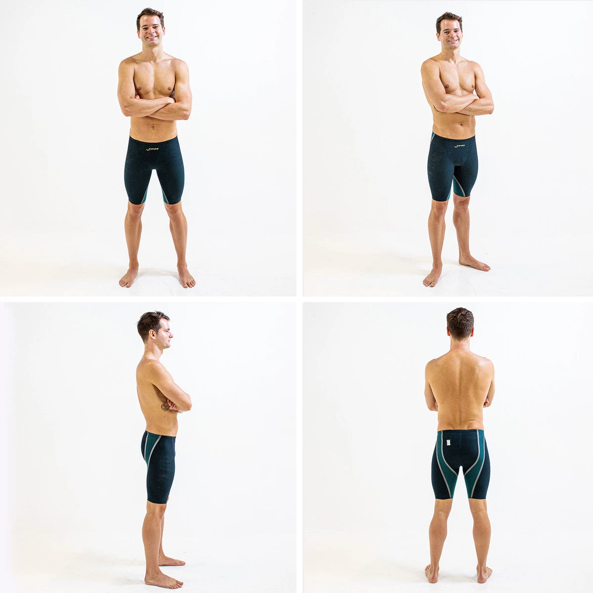 - In the male suit, we focused on intensifying the compression on the back of the legs to lift the legs to the surface.