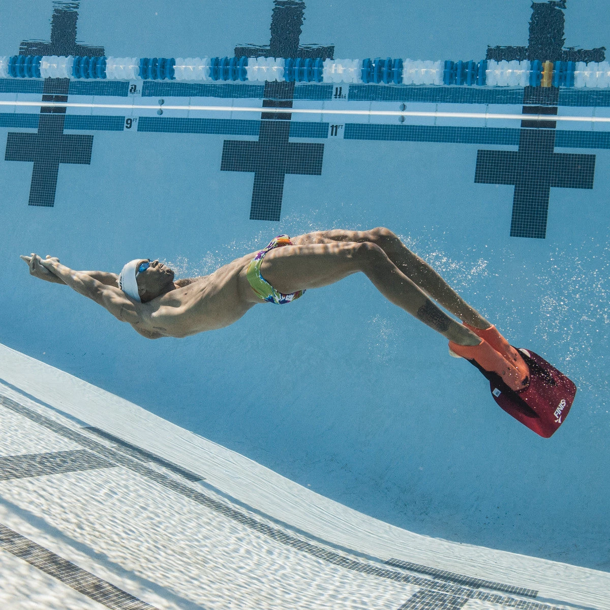 With a short and stiff fiberglass blade, the Shooter monofin builds a quick and powerful butterfly kick, while improving flexibility in feet and ankles. Allows for race pace kick speed while working abdominal muscles, lower back, quadriceps and gluteus.