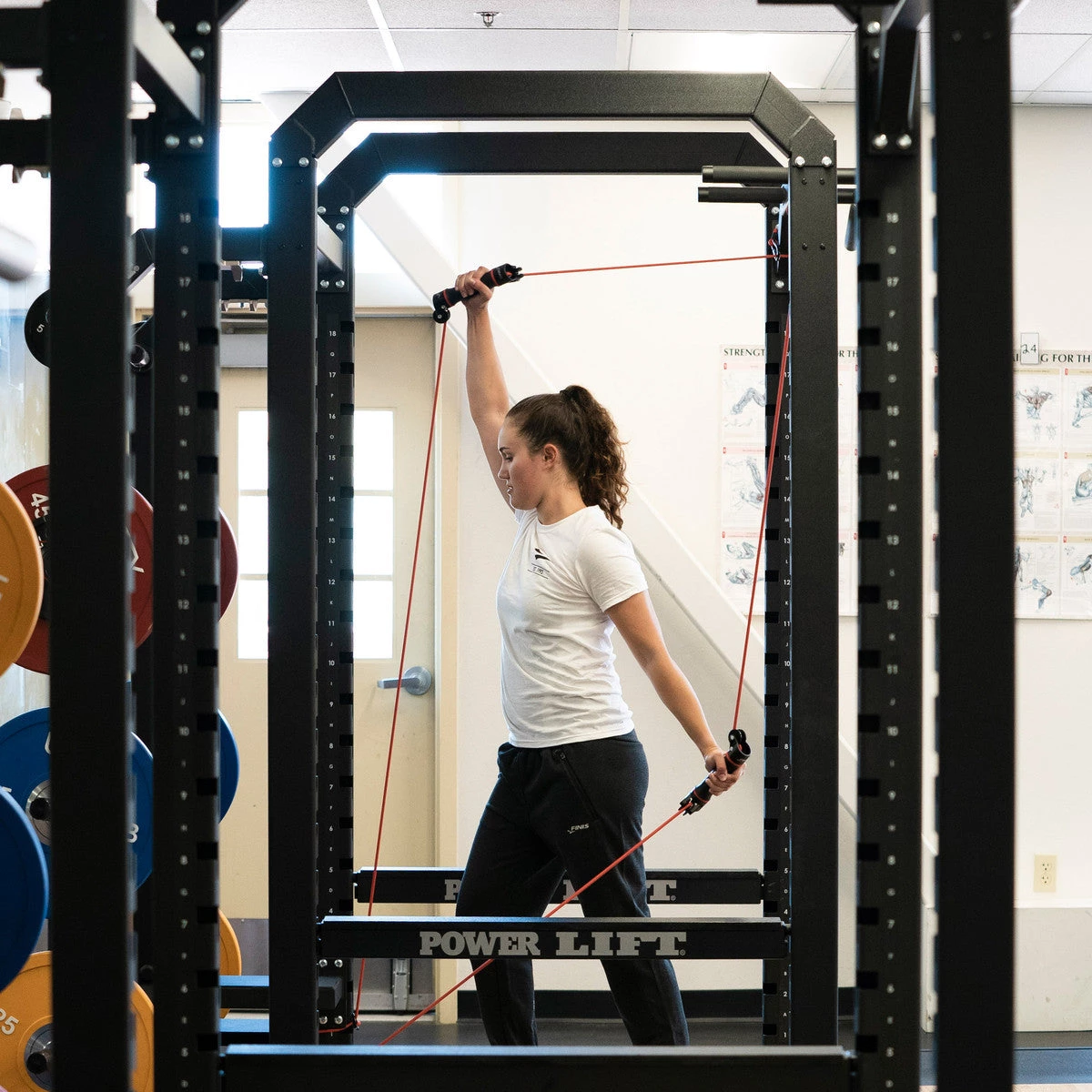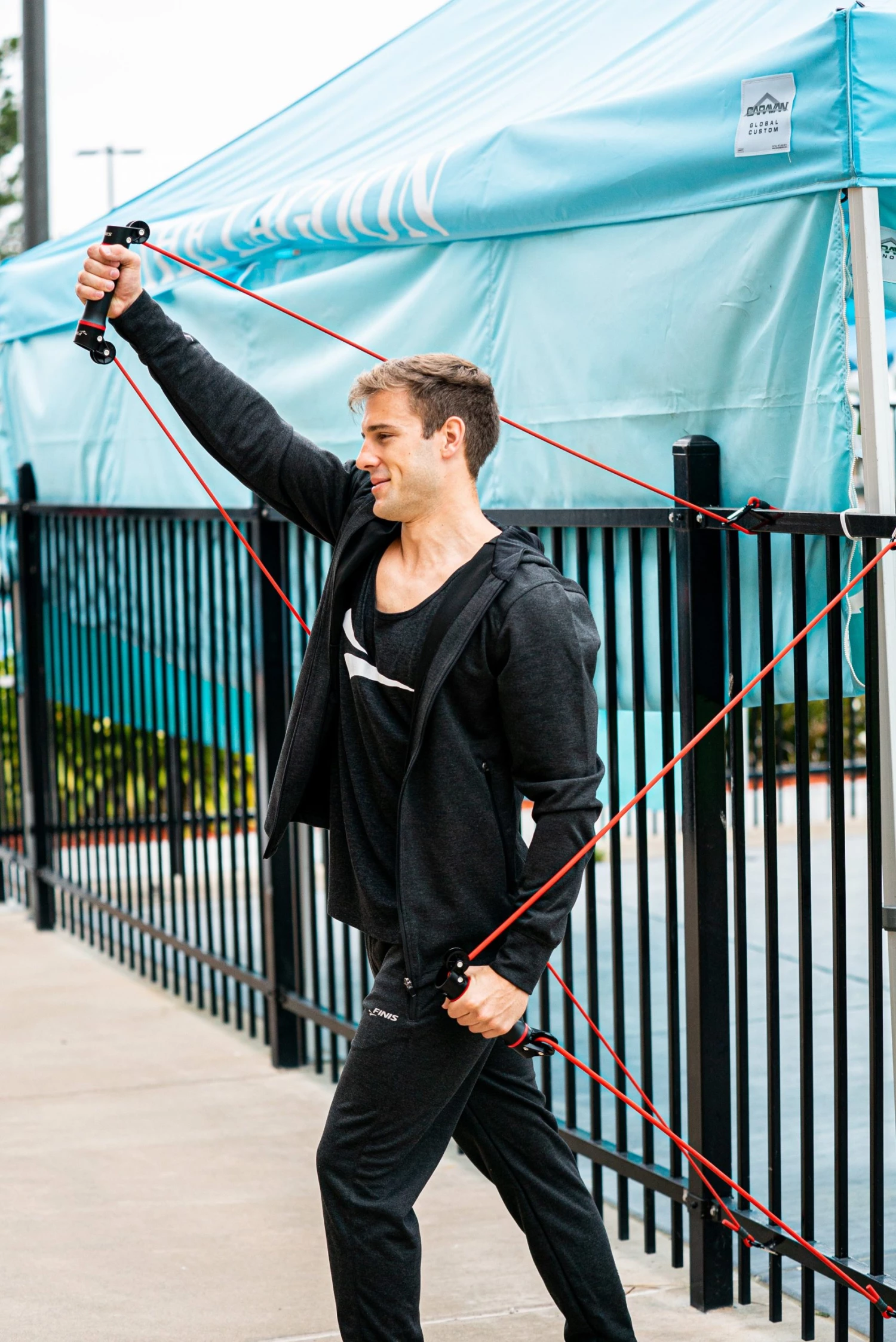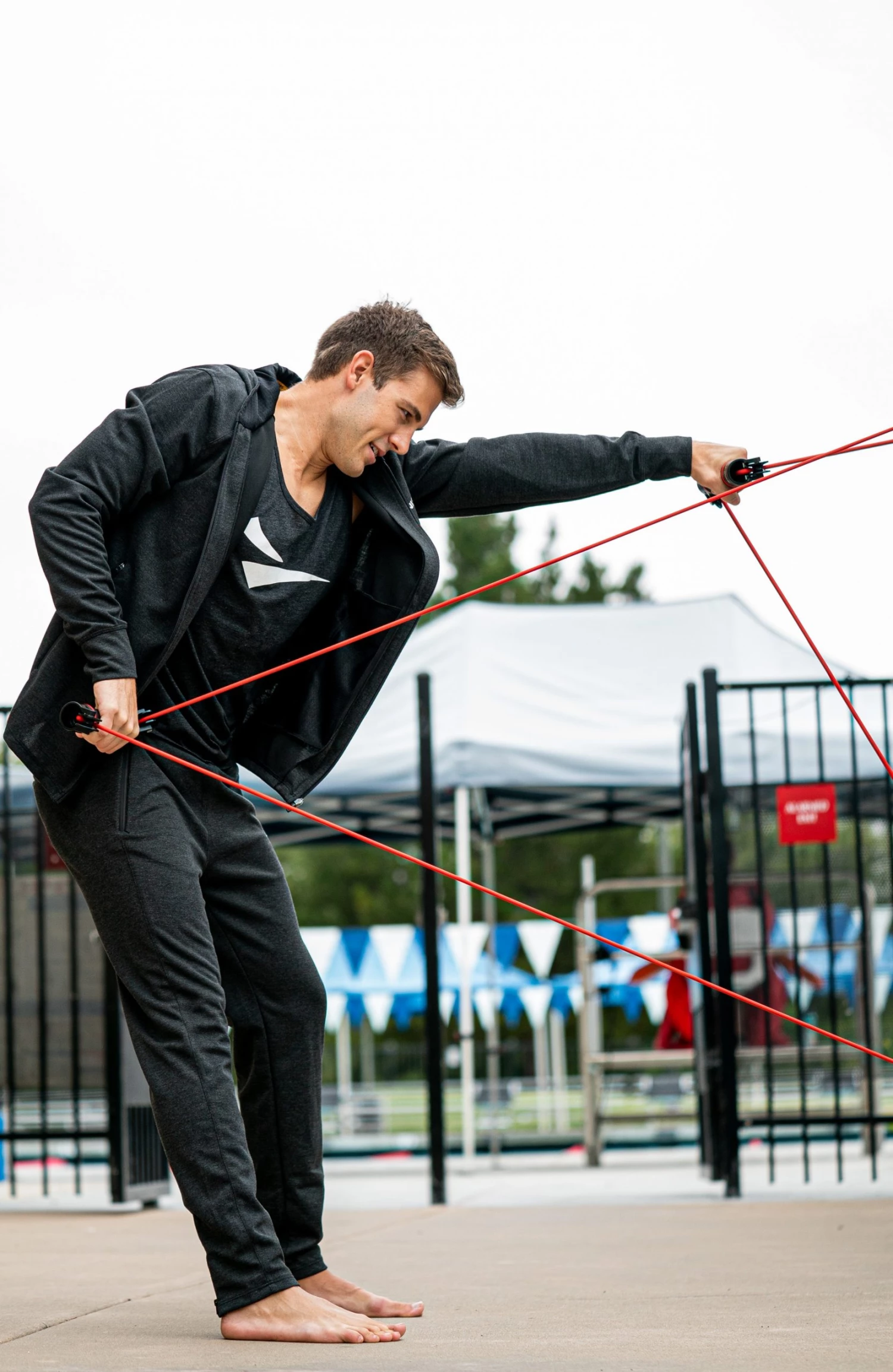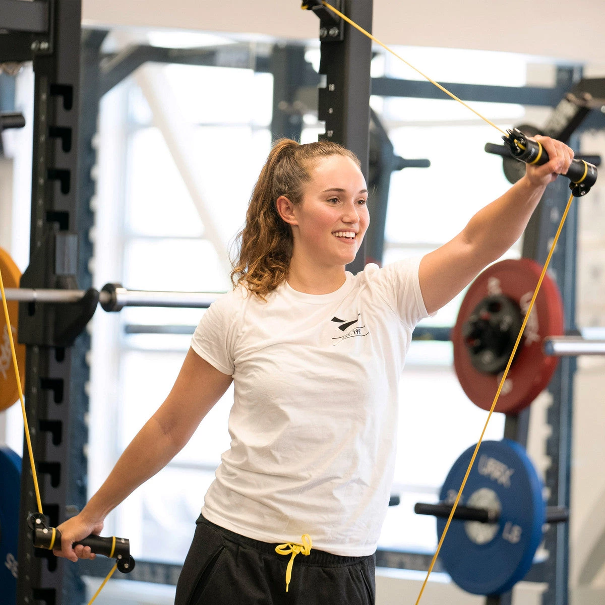 The Slide Dryland Trainer is designed to provide swimmers with exercises that mimic the entire swim stroke cycle with consistent resistance. Attach the cord to two different points on a chain-link fence (or similar) to add variety and different angles to your strength and conditioning training. The two rotating handles allow swimmers to practice hand and forearm positioning without cord interference or overloading.