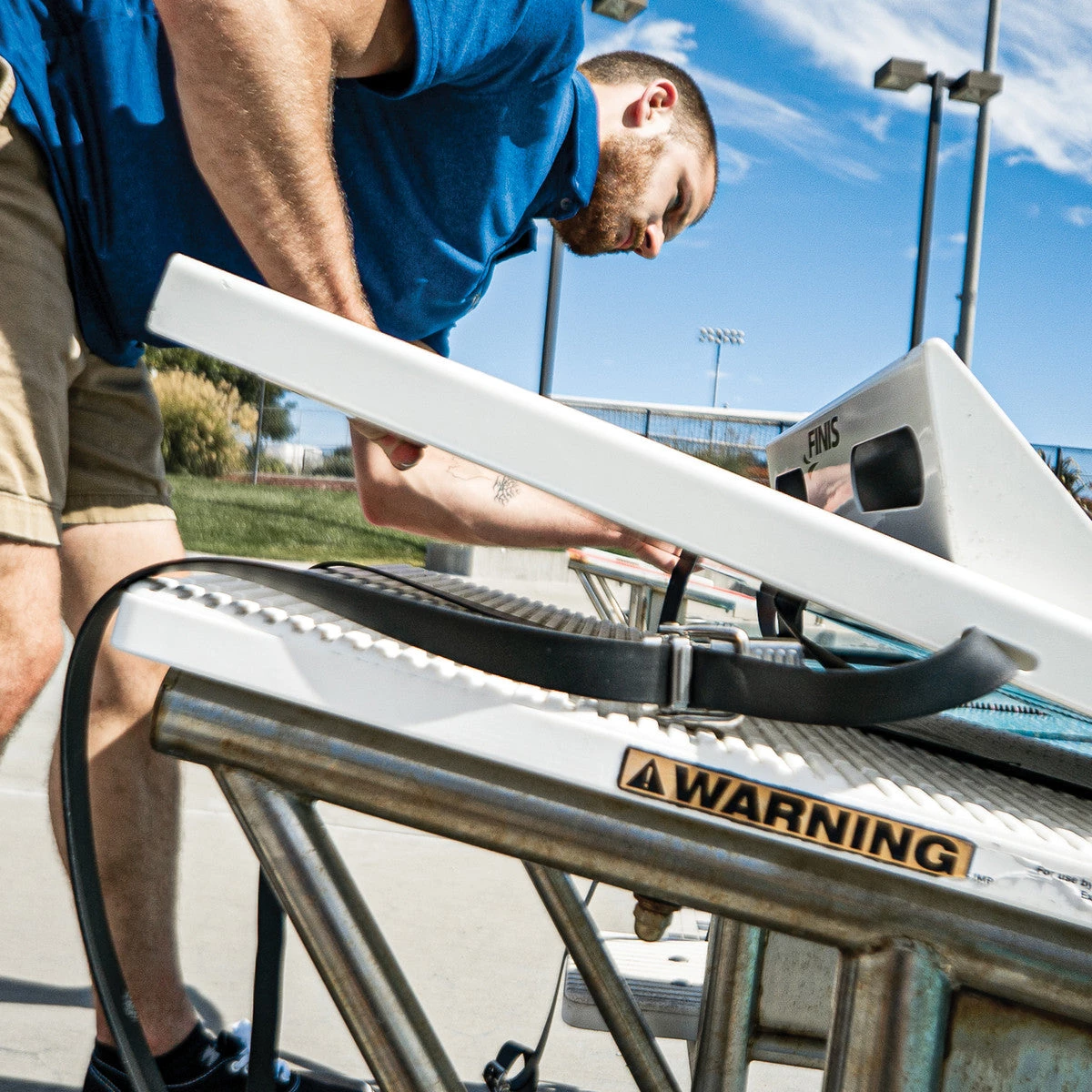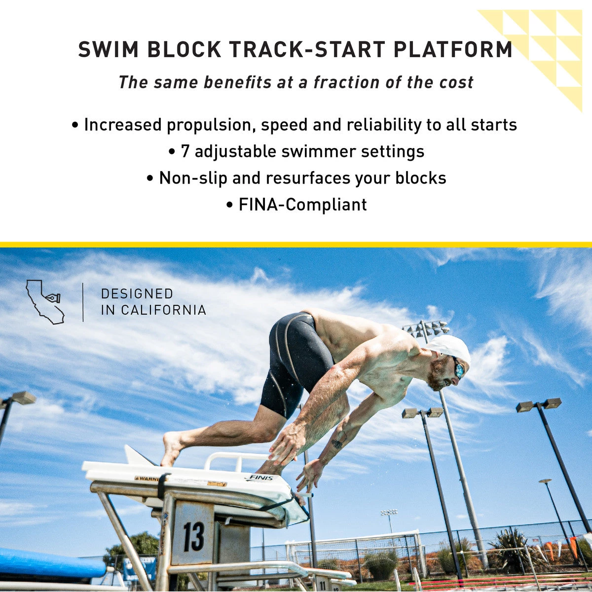 The Swim Block Track-Start is designed as an affordable way for swimmers to practice explosive race starts. The Track-Start is a platform that can be attached to your existing blocks via two methods: bolted or strapped. The bolt method is a semi permanent method requiring you to drill small holes into your block. The strap method is temporary and allows you to strap the platform onto your block when you are ready to practice with it. The Swim Block Track-Start fits all standard blocks and is FINA-compliant.