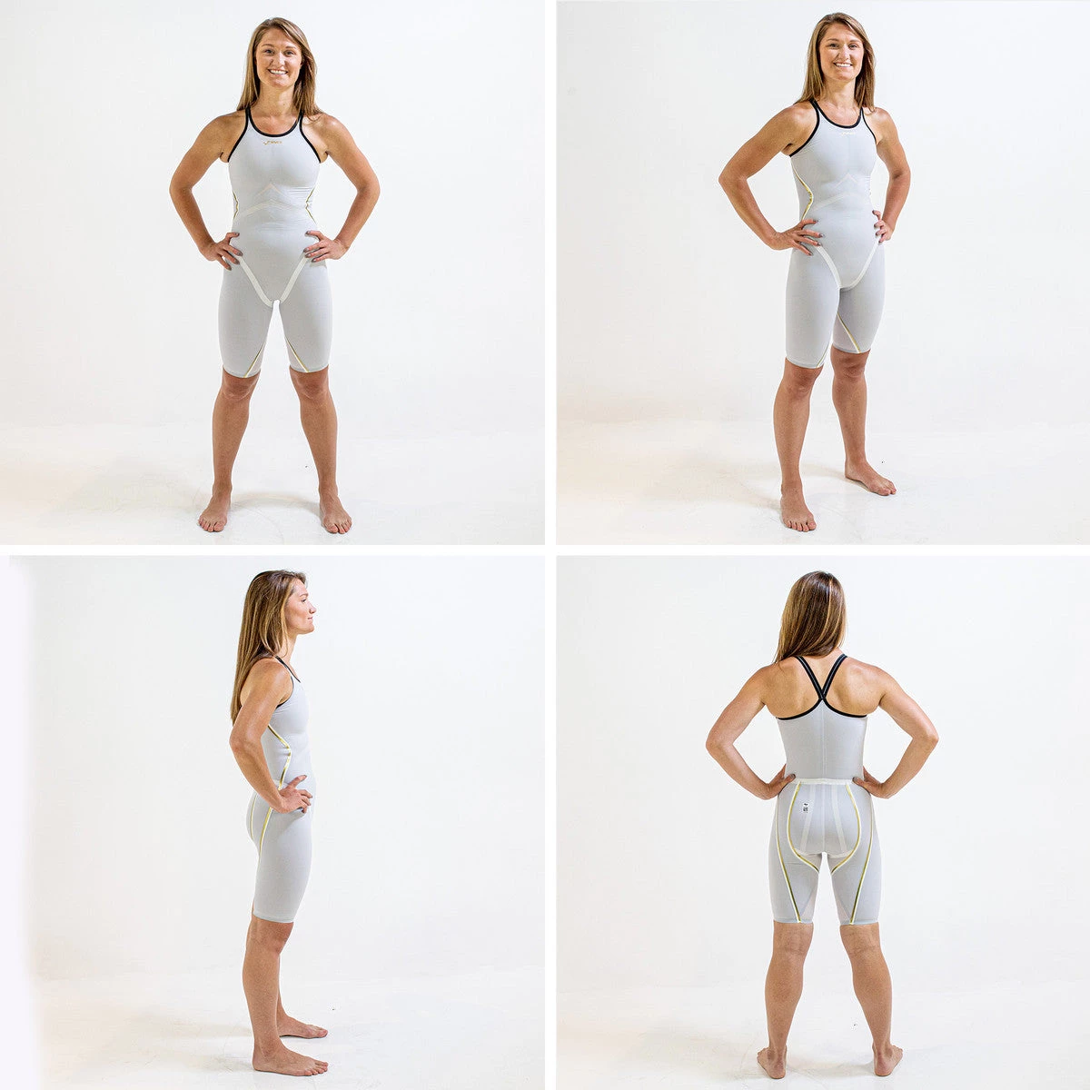 - In the female suit, we added a vertical chest seam to prevent air pockets and reinforce oblique and lower abdomen compression.