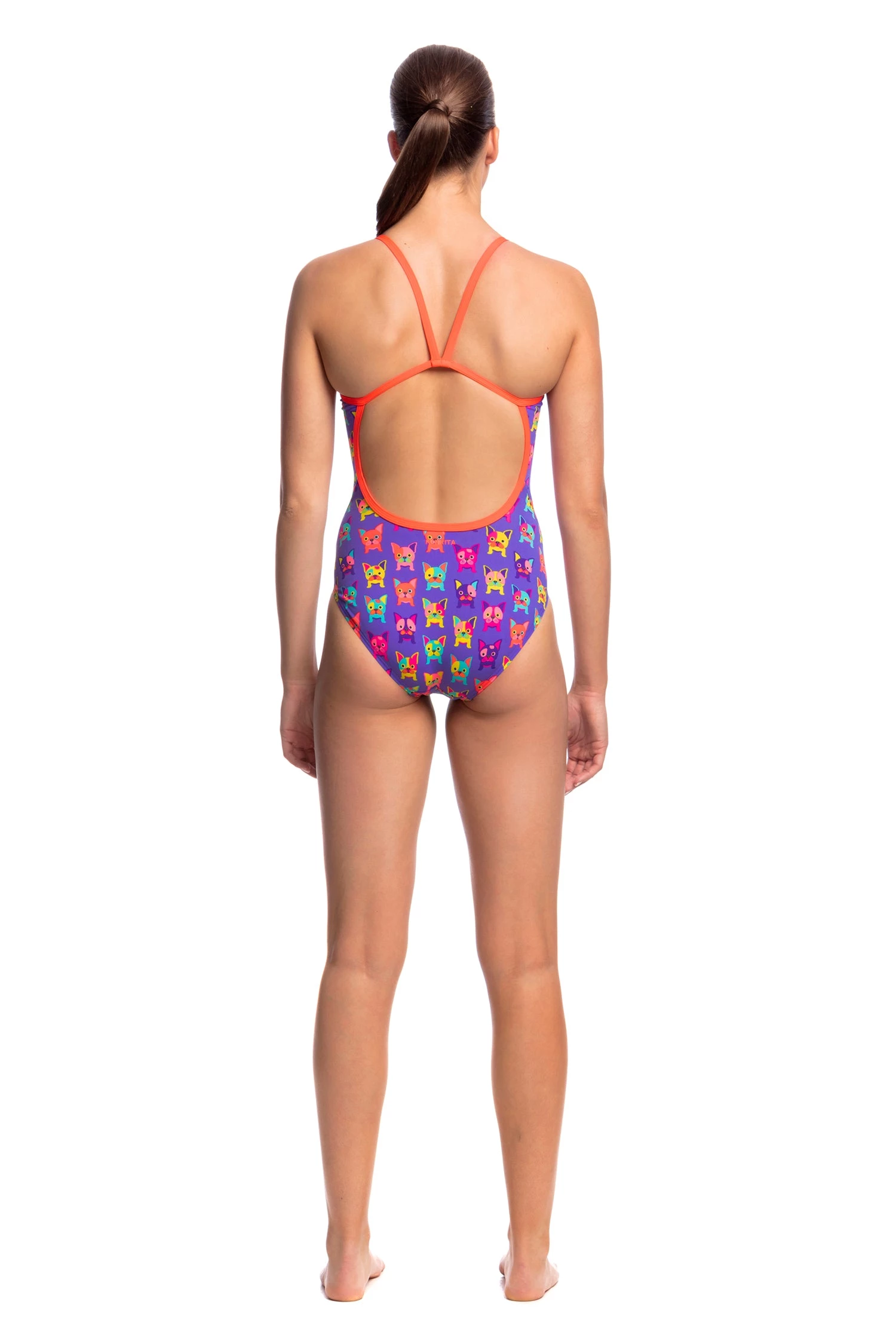 Single strap one piece with strappy V shaped back. Excellent durability and freedom of movement with single bind finish and an open back that will flatter your sporty shape. With full front lining, this is the perfect style for those long hours of training in the pool. Available in sizes 8 – 16.