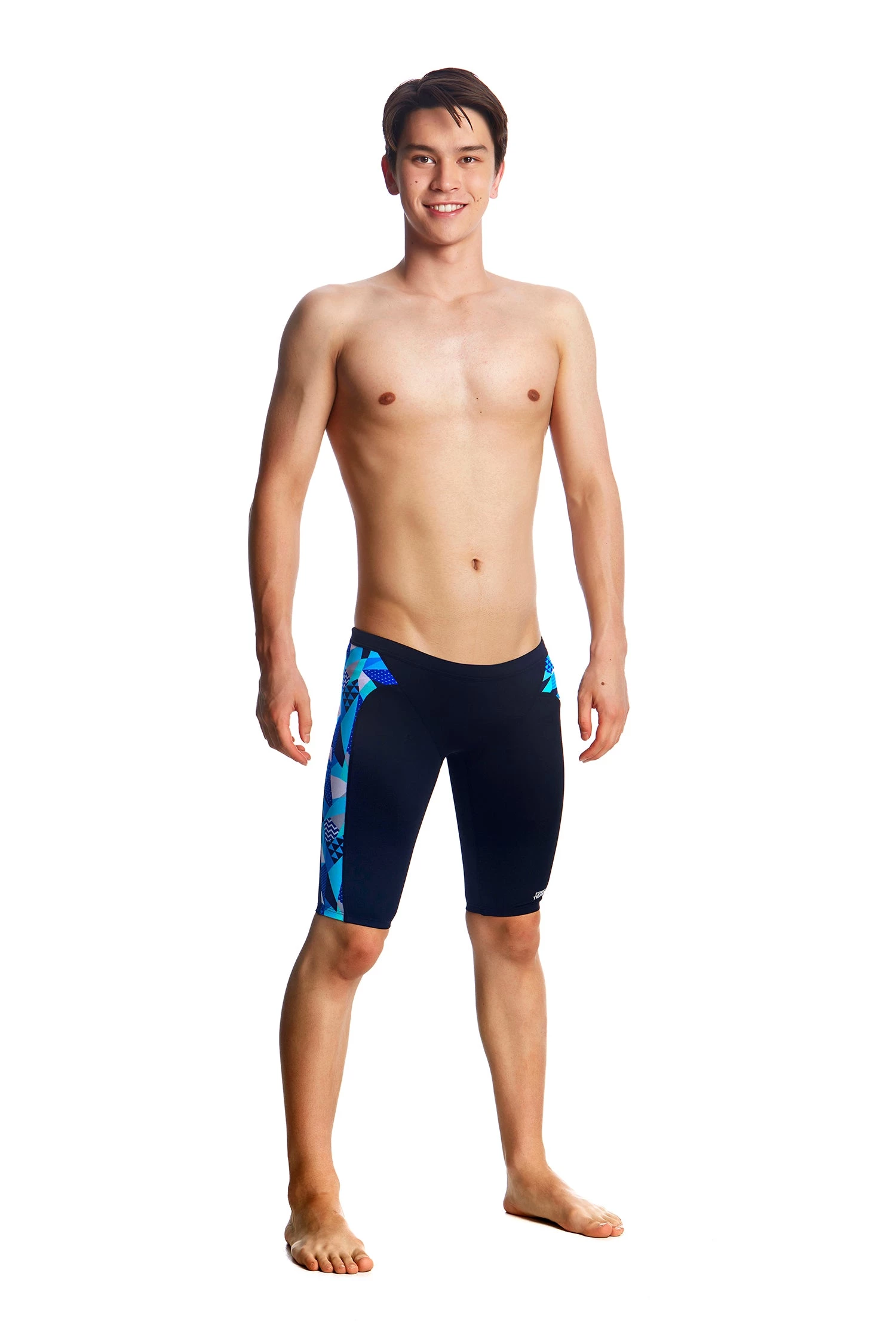 The Training Jammer is perfect for regular training with flatlock stitching, comfortable leg opening, drawcord and rubber print Funky Trunks logo. It’s a popular choice for swimmers and triathletes and offers and extra layer of warmth in open water when a wetsuit isn’t an option. Available in boys sizes 22 – 28 (6 – 12) .