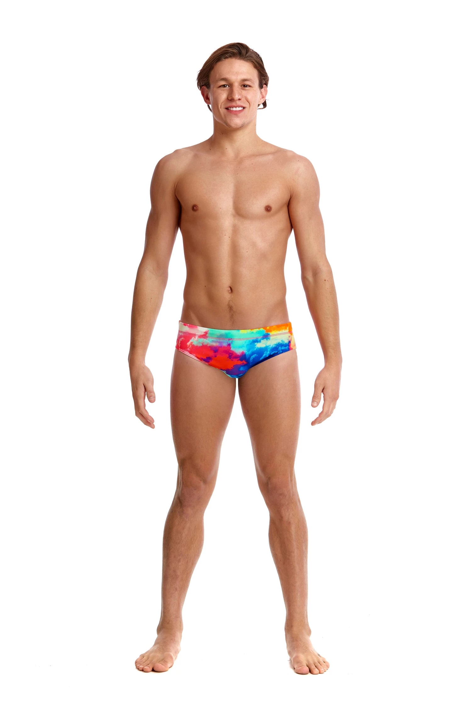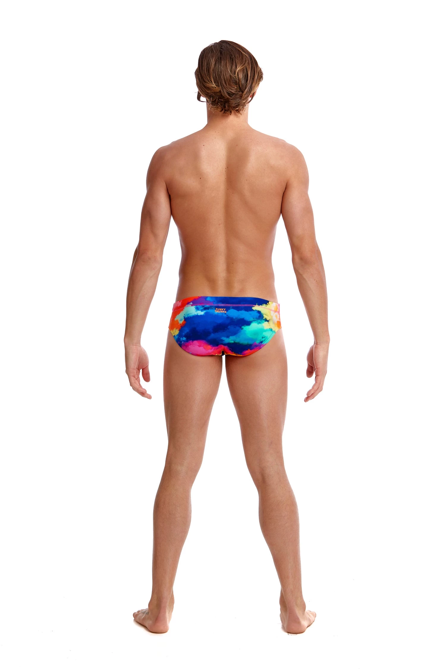 A classic cut brief with 8cm sides and flat elastic waistband and flatlock stitch finish. Drawcord, front lining and Funky Trunks embroidery come standard.