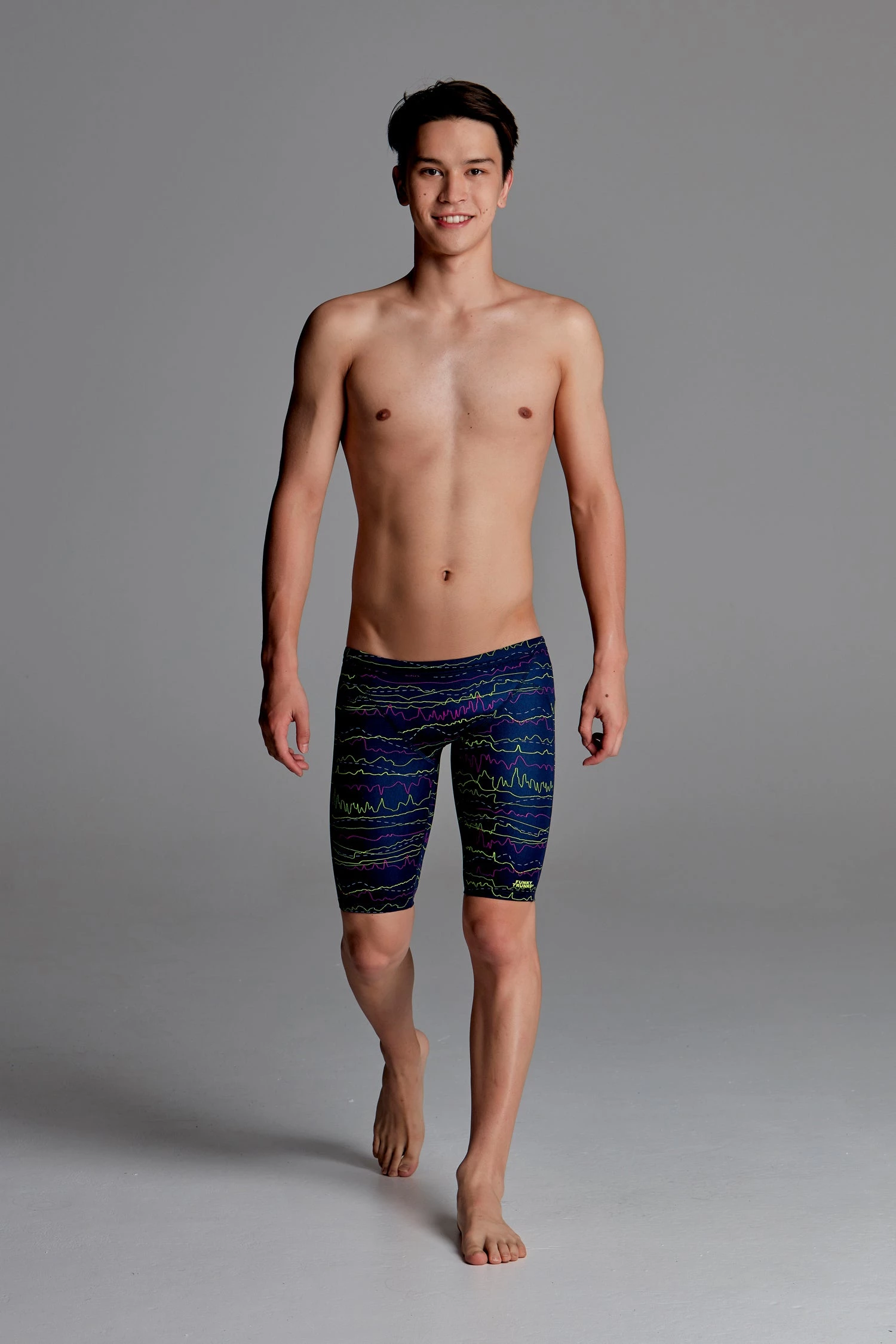 The Training Jammer is perfect for regular training with flatlock stitching, comfortable leg opening, drawcord and rubber print Funky Trunks logo. It’s a popular choice for swimmers and triathletes and offers and extra layer of warmth in open water when a wetsuit isn’t an option. Available in boys sizes 22 – 28 (6 – 12) .