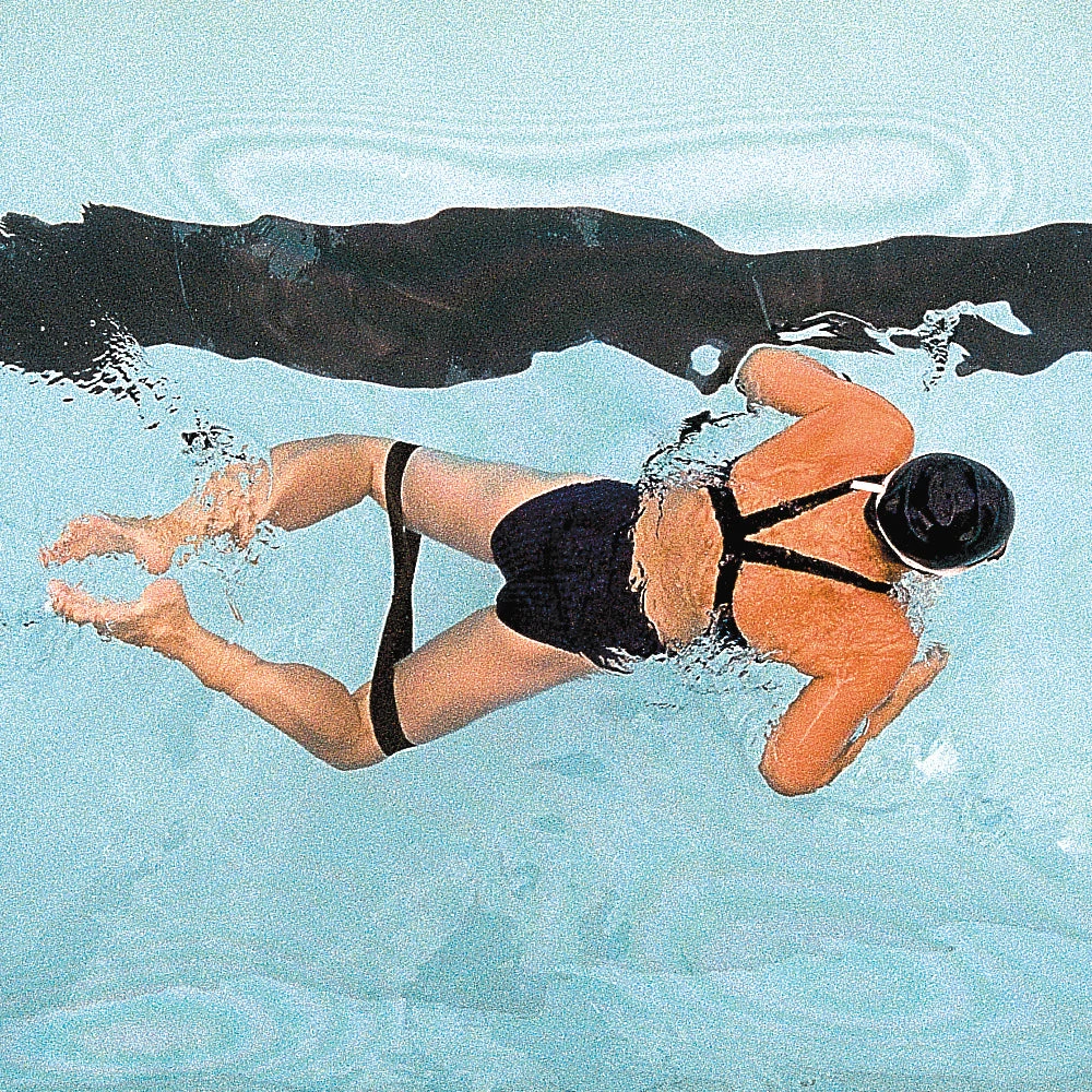 The STRECHCORDZ® KNEE ELASTIC elastic band fits above knees to provide resistance and control position during breaststroke kick; assists with recovery from groin injuries.