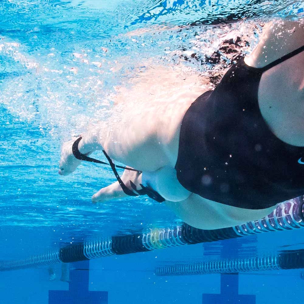 The STRECHCORDZ® ANKLE ELASTIC elastic band fits around ankles for control of position during kicks. Helps neutralize kicking motion during pull sets.