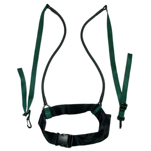 The STRECHCORDZĀ® STATIONARY SWIM TRAINER is a comfortable waist belt that fits up to a 44in/1.1m waist with two 2-ft/60 cm tubes and two 2.5-ft/76 cm of adjustable nylon fasteners with clips on each end.